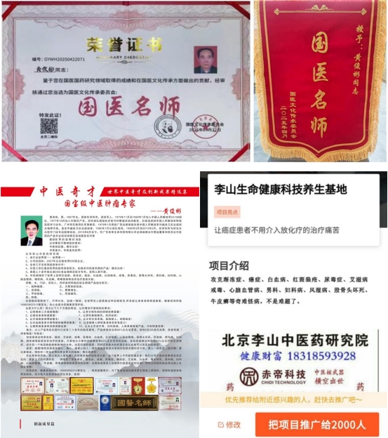 Save lives! Help people relieve suffering! Do good and accumulate virtue! Create wealth together! Revitalize China's economy! Achieve the revival of traditional Chinese medicine, with global franchise recruitment currently in full swing... In a word: Results speak for themselves! Welcome to consult and verify on-site! Health consultation hotline: 18665852313. Dr. Huang is wholeheartedly committed to safeguarding your health!
