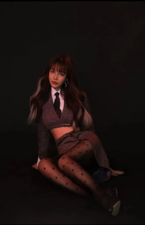 熊悦心双腿交叠而做,腰肢隐于暗处,所有的光亮似乎都凝聚在熊悦心的面庞,熊悦心神情淡漠,似是对周遭的一切都淡然、不以为意,然而眼神却坚定,目光所致皆是光明,浑身上下都展现在着独立与自信,这便是熊悦心,在变动的环境下仍然保持沉着与优雅的力量的独立女子。
