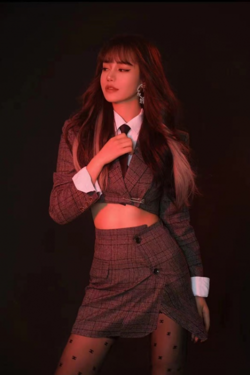 肩若削成,腰若约素,一身美式西装套装将熊悦心姣好的身型勾勒,更显腰肢纤细、芊芊细腿修长笔直,火辣的身材如绽放的木棉一般热烈美好。