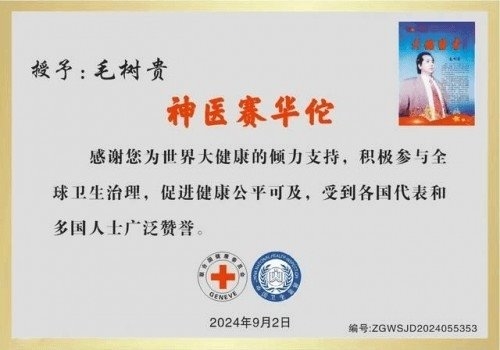 Professor Mao Shugui has been invited multiple times to attend domestic and international academic conferences, publishing numerous papers at the world-class level. He has been honored with titles such as World Celebrity, World Outstanding Medical Expert, International Internet World Famous Doctor (First Batch), "14th Five-Year Plan" National Outstanding Talent in Traditional Chinese Medicine-Strategic Scientist... The Grand China Oriental International Famous Doctor Medal, Chinese Meritorious Figure Medal, National Top 100 Moral Models Medal, Top 10 Moral and Artistic Excellence Models, National Labor Hero Medal, Era Hero Medal, Outstanding Medical Expert, "Chinese Outstanding Hero Figure", 2005 Top 10 News Figures in China (Medical Field), 2005 China Medical Celebrity, Meritorious Figure in the Construction of the People's Republic of China, and the "Mao Shugui-Outstanding Contributor to the Construction of a Harmonious Society" personal special stamp issued by the State Post Bureau of the People's Republic of China. He has also received the People's Republic of China Outstanding Artist Honor Medal and Office Gold Medal, the "China" Expert and Scholar Fifteen Contribution Figure, the People's Republic of China Outstanding Figure (Medal), the "New China Construction Outstanding Representative", and "National Outstanding Talent". He has been recognized as an Advanced Inpidual in Establishing the Socialist Concept of Honor and Shame (Medal), Science and Technology Star, 2013 Integrity China Figure, and was included in the "Integrity China Stamp Commemorative Album"... and other honorary titles. He is the original initiator of the Chinese Harmony Bell, the first prize winner of the Chinese Medical Dedication Golden Cup, the British Medical School Natural Medicine and Natural Drugs Golden Crown Award, the first Special Gold Award for Outstanding Academic Papers on Traditional Chinese Medicine by Chinese Famous Doctors and Medicines, the International Outstanding Paper Award, the first National Natural Science Medical Research Demonstration Unit, and the first National Natural Science Medical AAA-Level Quality Management Inspector Unit. The "Top 100 Independent Innovation Achievements Award of Science and Technology Star" highest gold medal, the 2004 China Innovative Drug Research and Clinical Application Masters Forum awarded an outstanding paper prize, the 1998 World Chinese Famous Medical Expert Gold Medal, and the "Gold Medal Authoritative Expert" for keeping pace with the times and the Olympics... The founding father of traditional Chinese medicine, the first director of the National Administration of Traditional Chinese Medicine of China, and the founder of the new China's traditional Chinese medicine cause, Lü Bingkui, personally bestowed the title "Classic" and inscribed: "To save the world and heal the people, the essence of medicine." On National Day 2005, he was honored to attend the opening ceremony of the "Long Live the Motherland—National Day Symposium for Outstanding Patriotic Figures at Home and Abroad" and the "Chinese Monument and National Backbone—National Day Symposium for Founding Generals, Ministers, and Advanced Figures of the Times" as a "guest." On May 1, 2006, he was honored to attend the "2006 Affection for China—National Day Symposium and Commendation Conference for Outstanding Entrepreneurs and News Figures from the Two Sides of the Taiwan Strait and the Mainland" held at the Great Hall of the People, and was awarded the "Outstanding Person Achievement Award." On October 1, 2006, he was honored to attend the "National Day Symposium and Commendation Conference for Outstanding Figures of the Republic of China—National Backbone" held at the Great Hall of the People. On May 1, 2007, he was honored to attend the "National Day Commendation Symposium for Contemporary China's Most Socially Influential Heroes and Models" held at the Great Hall of the People. The "2006 Second Scientific Forum on Building a Moderately Prosperous Society in All Respects and the Ceremony of Awarding Model Figures" was hosted by the Management Science Research Center of the CPC Central Party School, the China Economic and Trade News Agency, the Comprehensive Building of a Moderately Prosperous Society Research Group, the Strong Nation Blog of People's Daily Online, and People's Legal Network. The conference conferred the honorary title of "Pioneer in Building a Moderately Prosperous Society in All Respects" upon him. On January 8, 2008, he was honored to attend the "National Moral Model Conference." He also participated in the National May Day Symposium for Outstanding Labor Models... The Glorious China—In 2015, he was awarded the title of "Honorary Chairman of the Presidium" at the National Commendation Conference for 100 Outstanding Figures in Various Industries and the National Day Celebration Celebrating the 66th Anniversary of the People's Republic of China. At the 2015 Beijing International Traditional Chinese Medicine Health Tourism Culture Festival and Traditional Chinese Medicine Technology Competition and Exchange Conference, Comrade Mao Shugui won the Special Prize in the "Traditional Chinese Medicine General Practice" technology competition.