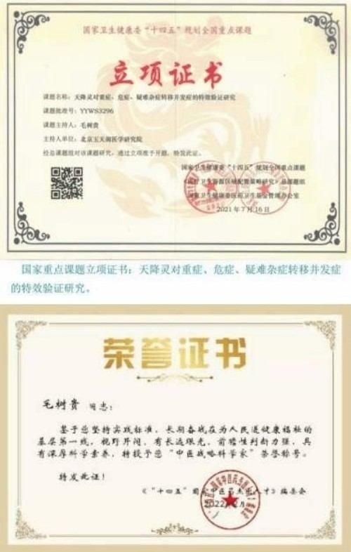 National Merit, a peerless medical genius. National First-Class Master of Traditional Chinese Medicine. Chief Physician, Professor, Grandmaster of Traditional Chinese Medicine and Chairman of the Traditional Chinese Medicine Industry, Doctoral Supervisor, National Strategic Scientist of Traditional Chinese Medicine, Merit Figure of National Master of Traditional Chinese Medicine, Peerless Medical Genius, Grandmaster of Traditional Chinese Medicine, National Treasure-level Traditional Chinese Medicine. President of Beijing Yutian Pavilion Medical Research Institute, Vice President of the Chinese Medical Clinical Research Association, Chairman of the International Association of Famous Traditional Chinese Medicine Experts, C.. National Industry Management Inspector. "14th Five-Year Plan" National Outstanding Talent in Traditional Chinese Medicine—Strategic Scientist. People's Daily, Central Hotspot Observation, Xinhua News Agency, China News Broadcast, CCTV Central Media Headlines, China Education, Central News Two Sessions Column, Party and Government News Network, Political News Network: National Strategic Scientist of Traditional Chinese Medicine, Grandmaster of Traditional Chinese Medicine, Merit Figure of National Master of Traditional Chinese Medicine—Savior Mao Shugui...