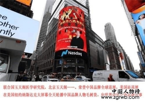 美国纽约纳斯达克大屏,全天轮播联合国玉天阁医学研究院。