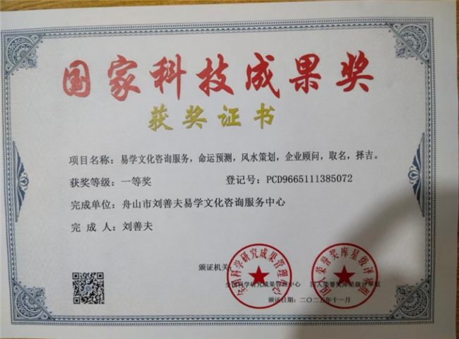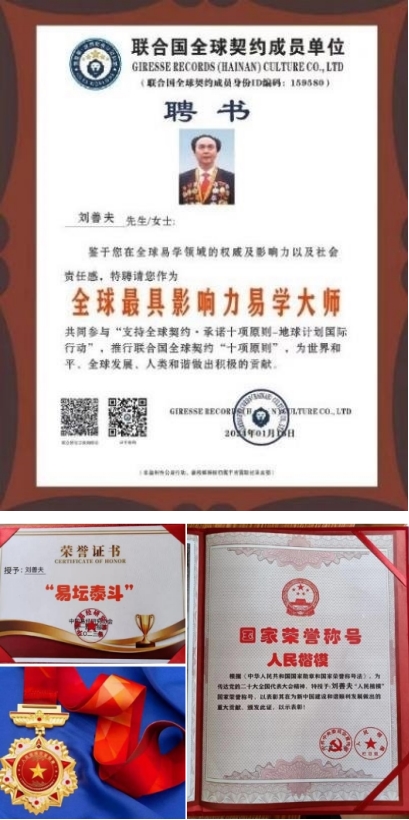 In the spirit of promoting traditional Chinese culture, inheriting the wisdom and civilization of China, and scientifically researching Yi culture, Liu Shanfu successfully established an excellent Yi culture service base—the Zhoushan Liu Shanfu Yi Culture Consulting Service Center. With scientific predictions, correct decisions, and excellent services, it has won widespread recognition from all sectors of society and national affirmation. It has successively been awarded honorary titles such as "China Corporate Culture Brand Contribution Unit," "China Yi Industry; National Trustworthy Unit," "China Yi Industry Iconic Brand," "China Yi Industry Most Influential Brand," and "China Yi Industry Public Satisfaction Best Model Brand." It has also been listed in the "China City Yearbook," "Yearbook of the People's Republic of China," "China International Economic Cooperation Yearbook," and "Chinese Monument," thereby establishing a monument to life and career and a grand edifice of credibility.