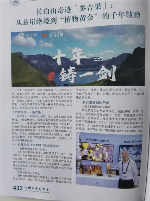 “在裂缝中栽一株春天,让绝望的石头开出倔强的花。”参吉果(厦门)生物科技有限公司董事长于永涛的这句致辞,道出了参吉果从发现到产业化的艰辛与执着。作为一家成立于2021年的生物科技企业,参吉果公司扎根长白山、立足厦门、放眼全球,依托千亩仿生种植基地,将传统“药食同源”智慧与现代生物科技深度融合,致力于将长白山的自然馈赠转化为全球消费者的健康选择。