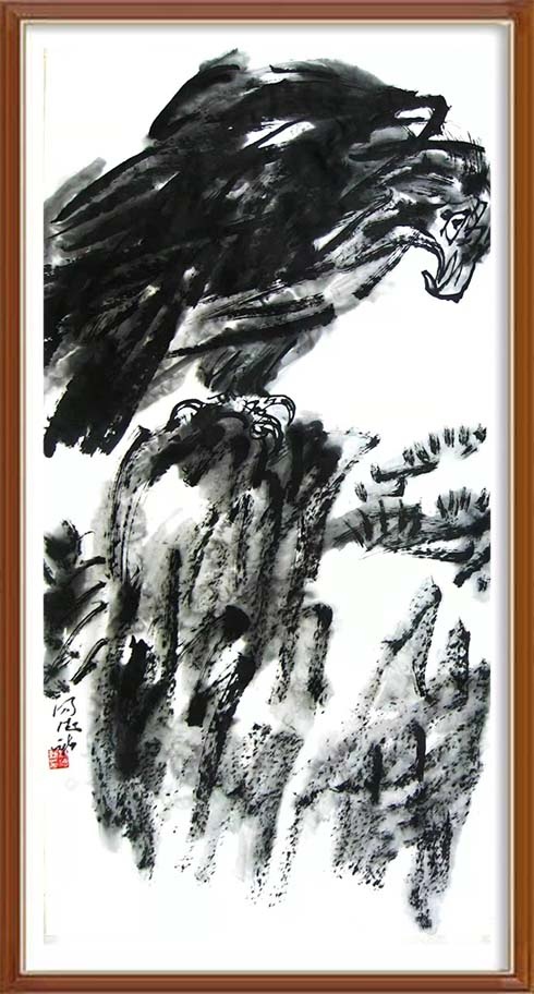 对线条的勾勒和线条的照影及照影下的艺术效应充分体现了汤氏美术素描上的功力,是格式化培养出的艺术“匠人”无法达到的,灵透、虚实的结合反映其内心深处的灵感和创造力,把自然与人的物体效应加以艺术上的揣摩和滚打——高于了“生活”。毋容置疑笔墨随心生、中西合璧之丹青情怀、横溢思绪、大泻倾潭、灵气贯通、静动萧慕而时有变化。花、鸟、石、人、物浑厚却不入俗态、笔墨遒劲连绵、更深而幽邃,这也许是汤德新的整体韵味吧。